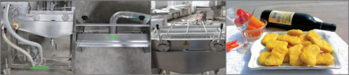 【可以銜接上粉機(jī)、上屑機(jī)、成型機(jī),油炸機(jī)等設(shè)備,從而實現(xiàn)連續(xù)性生產(chǎn);
