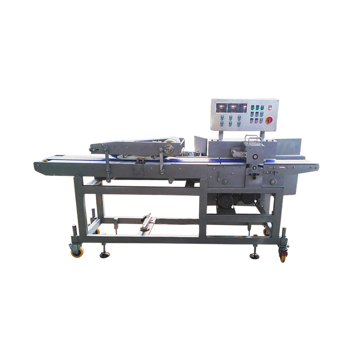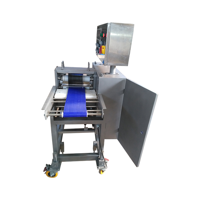 切條機是通過多組圓盤刀將肉均勻切割成條狀、塊狀等,適用于雞肉、豬肉、牛肉等其他畜、禽肉新鮮或冷凍原料的分切加工??膳c分切機對接成產出尺寸。
