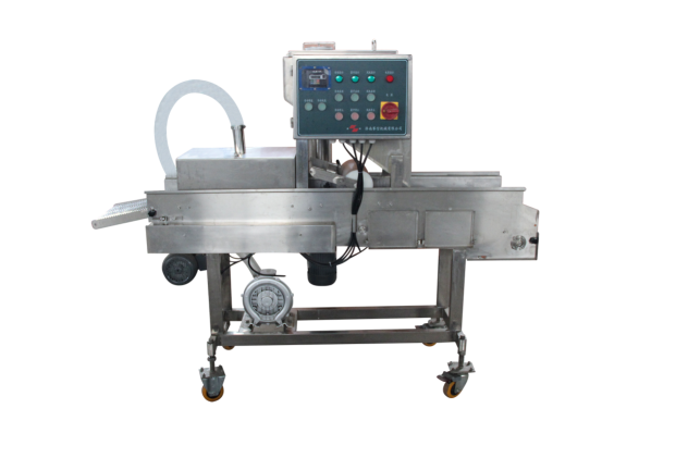 上屑機(jī)與上漿機(jī)配合使用,裹面包屑機(jī)可單獨(dú)使用。上面包屑機(jī)適合于中等以上干面包糠顆粒,全自動(dòng)裹康機(jī)對(duì)市場(chǎng)上流行的漢堡肉餅、麥樂(lè)雞塊、魚(yú)香漢堡肉餅、土豆餅、南瓜餅、肉串等產(chǎn)品進(jìn)行上面包屑處理,是快餐店、配送中心、食品工廠理想的上面包屑設(shè)備。