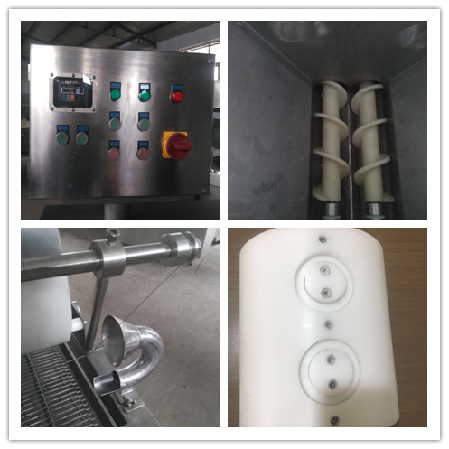 滾筒成型機(jī)可以生產(chǎn)魷魚圈,洋蔥圈,雞塊等各種形狀的產(chǎn)品,通過更換模具,可以連接濃漿機(jī)和上糠機(jī)和油炸機(jī)和速凍機(jī)組成一條流水線,