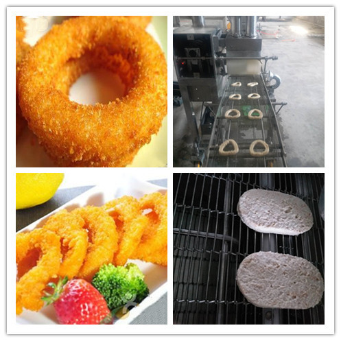 滾筒魷魚圈成型機(jī)可以做不同直徑大小的魷魚圈和洋蔥圈,它可以連接不同涂裹設(shè)備生產(chǎn)土豆餅,雞肉餅,牛肉餅和雞塊等不同產(chǎn)品,更換模具方便,適合于快餐店和小型連鎖店使用。