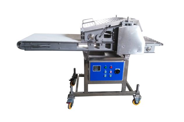 雞肉壓整機(jī)適用范圍:該設(shè)備適用于厚度小于40mm、無骨的所有肉塊的壓延。
